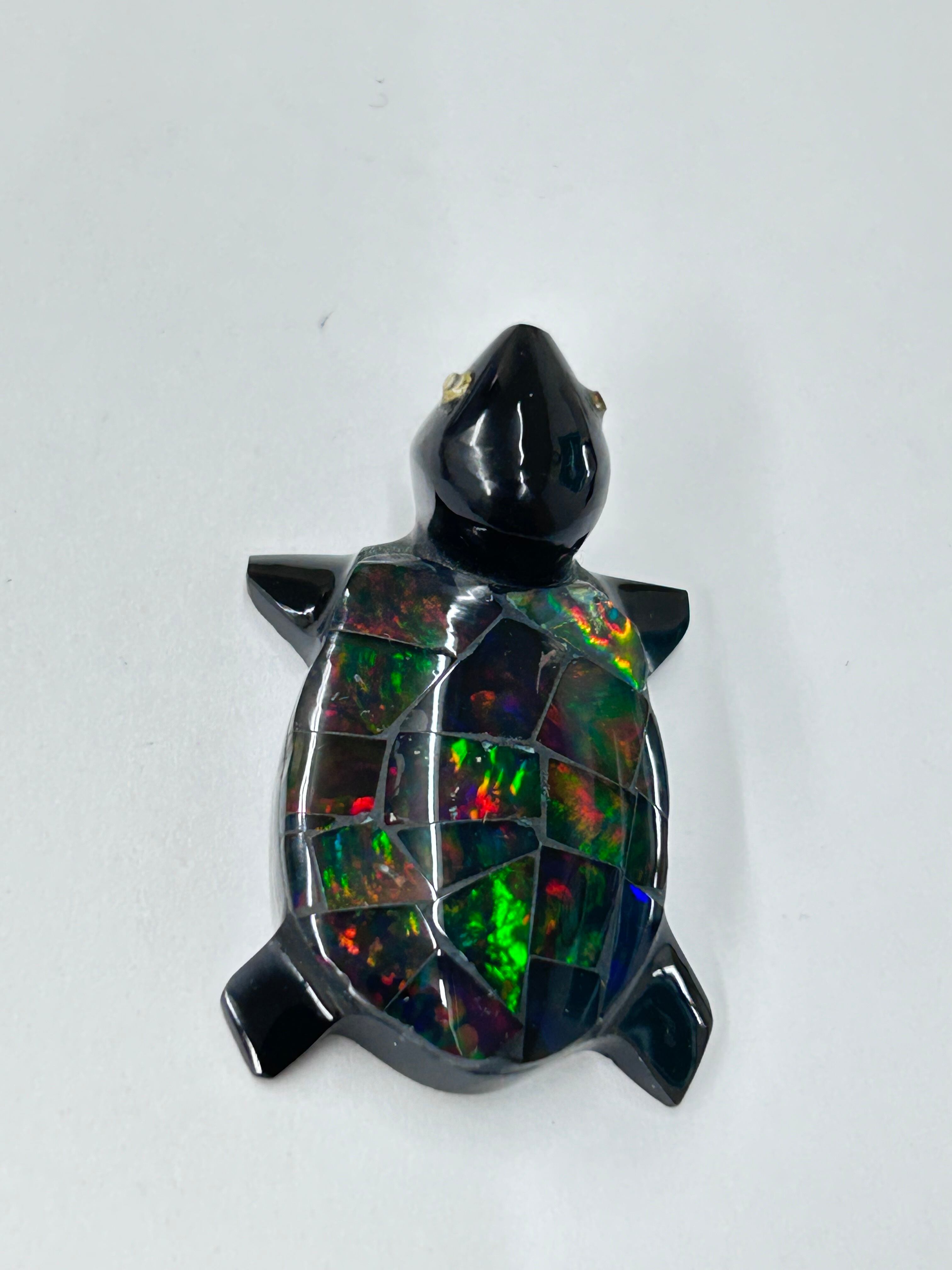 「鶴は千年、亀は万年」と言われているように、亀は長寿の象徴です。甲羅が小判に似ていることから金運を招くとされています。贈り物に喜ばれそうですね。置物として玄関や机の上に飾っておくのもいいし、お守りとしてバッグの中に潜ませておくのもいいかも。(注・・割れる恐れはあります)吸い込まれそうなアンモライトの輝きが素敵です。